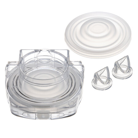 Symbol: 20/105The spare part set contains a silicone membrane, a plastic membrane cover consisting of two parts: the front and rear chamber cover and 2 pieces of silicone non-return valves. The membrane and the non-return valve prevent milk and moisture from entering the device, creating a closed system that ensures safe and hygienic pumping. The membrane and the non-return valve are made of silicone – free of BPA and other harmful substances. The parts in contact with breast milk can be boiled and sterilised repeatedly.