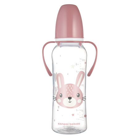 Canpol babies Standard Narrow Neck Bottle with Handles 250 ml CUTE ANIMALS pink