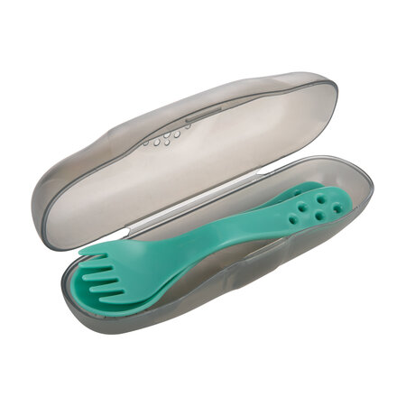 Symbol: 74/019_turDo you want to give your child a meal while traveling or on a walk? Travel cutlery set for children is the perfect solution for convenient feeding outside home. The set contains a fork and a spoon enclosed in a practical case is ready to use wherever you want. The case prevents the accumulation of bacteria, thanks to which the cutlery stays clean and its use is hygienic and safe for the child. After eating a meal, it allows to carry the set without the risk of dirtying your bag or backpack. The rounded edges do not irritate the baby's delicate gums, so they will also be useful in the first attempts to eat independently. The cutlery set for children is made of safe material - no BPA or other harmful substances were used in the production. Canpol babies travel cutlery set for children is available in several color variants.