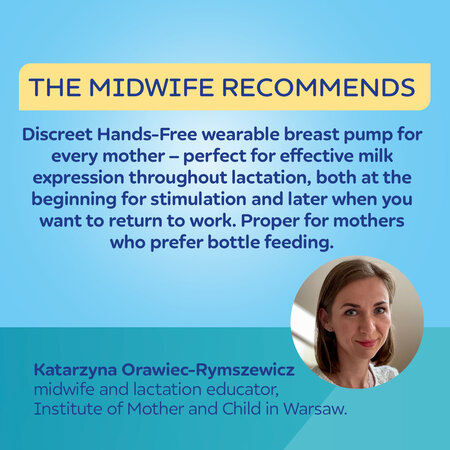 Symbol: 20/100Discreet in-bra breast pump Hands-Free is a breast pump for every mother to effectively express milk throughout lactation, both at the beginning for stimulation and later when she wants to return to work and for mothers, which also bottle feed. Perfect for bra and an active lifestyle - it combines comfort with mobility, supporting busy mothers in multitasking at home during everyday activities, at work and while traveling.