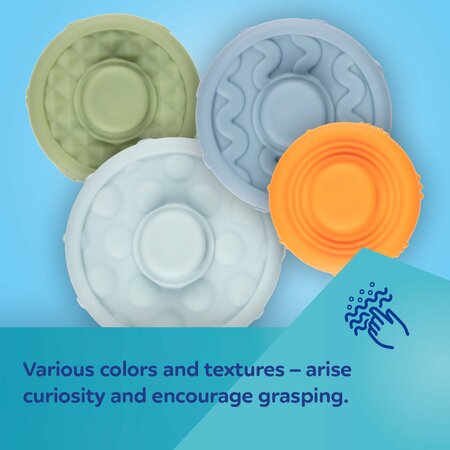 Keep the toy clean. Before first use wash with soft brush under running water with mild detergent, pour with boiling water. Do not boil. Do not sterilize. Remove all water remaining inside the toy by squeezing it out. Keep in dry place. Inspect carefully before each use. Throw away when worn, damaged or punctured by biting. Remove all packaging elements before giving it to a child.