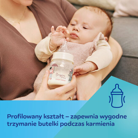 Az EasyStart Bonjour Paris cumisüveg biztonságos, BPA-mentes anyagból készült. Könnyű, átlátszó, és különleges formája kényelmet biztosít használat közben. A világos és pontos skála lehetővé teszi a gyors ételkészítést, a széles nyílás pedig megkönnyíti a cumisüveg és a cumi tisztán tartását. A cumisüveg kompatibilis a Canpol babies mellszívókkal, melynek köszönhetően a lefejt tejet azonnal a babának lehet adni. Űrtartalom 240 ml.