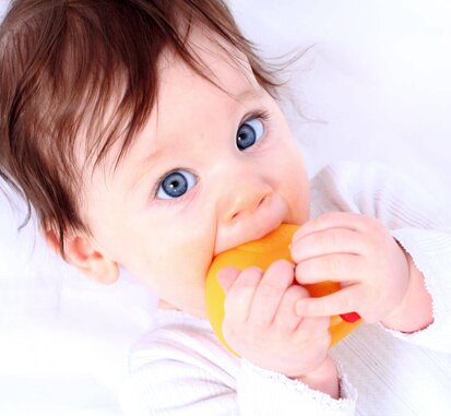 Yes, because a teething baby puts everything in his mouth. All items the baby has contact with, such as toys and rattles, must be regularly and thoroughly washed. Take special care of teething rings which are an inseparable part of your baby's life during this period. Elastic teething rings can be scalded and teething rings with gel can be sterilised by pouring them cautiously with boiling water. Always check the package information first. Teething rings are made of different materials which affects the way they should be dealt with.