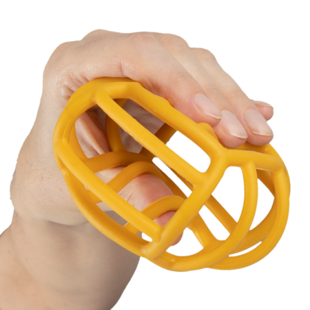 Rágóka és játék egyben - biztonságosan lehet dobálni, rugdosni, pattogtatni, összenyomni, nyújtani, és visszanyeri eredeti alakját
