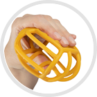 Szimbólum: 80/303A rugalmas szilikonból készült érzékelő rágóka tökéletes első játék a baba számára, de a legkisebbek számára is nélkülözhetetlen segítő a fogzás nehéz időszakában. Tökéletes, amikor az íny nagyon viszket, és a gyermeknek erős rágási kényszere van. A praktikus és könnyen fogható forma megkönnyíti a játékot, és támogatja a finommotoros készségek fejlődését. Segít az olyan készségek elsajátításában is, mint a fogás és a szem-kéz koordináció. Az érdekes színek és a térbeli kialakítás felkeltik a baba érdeklődését és játékra ösztönzik. A cumi rugalmas, biztonságosan összenyomható és nyújtható, játék után mindig visszanyeri eredeti alakját. Biztonságos, BPA-mentes anyagból készült.