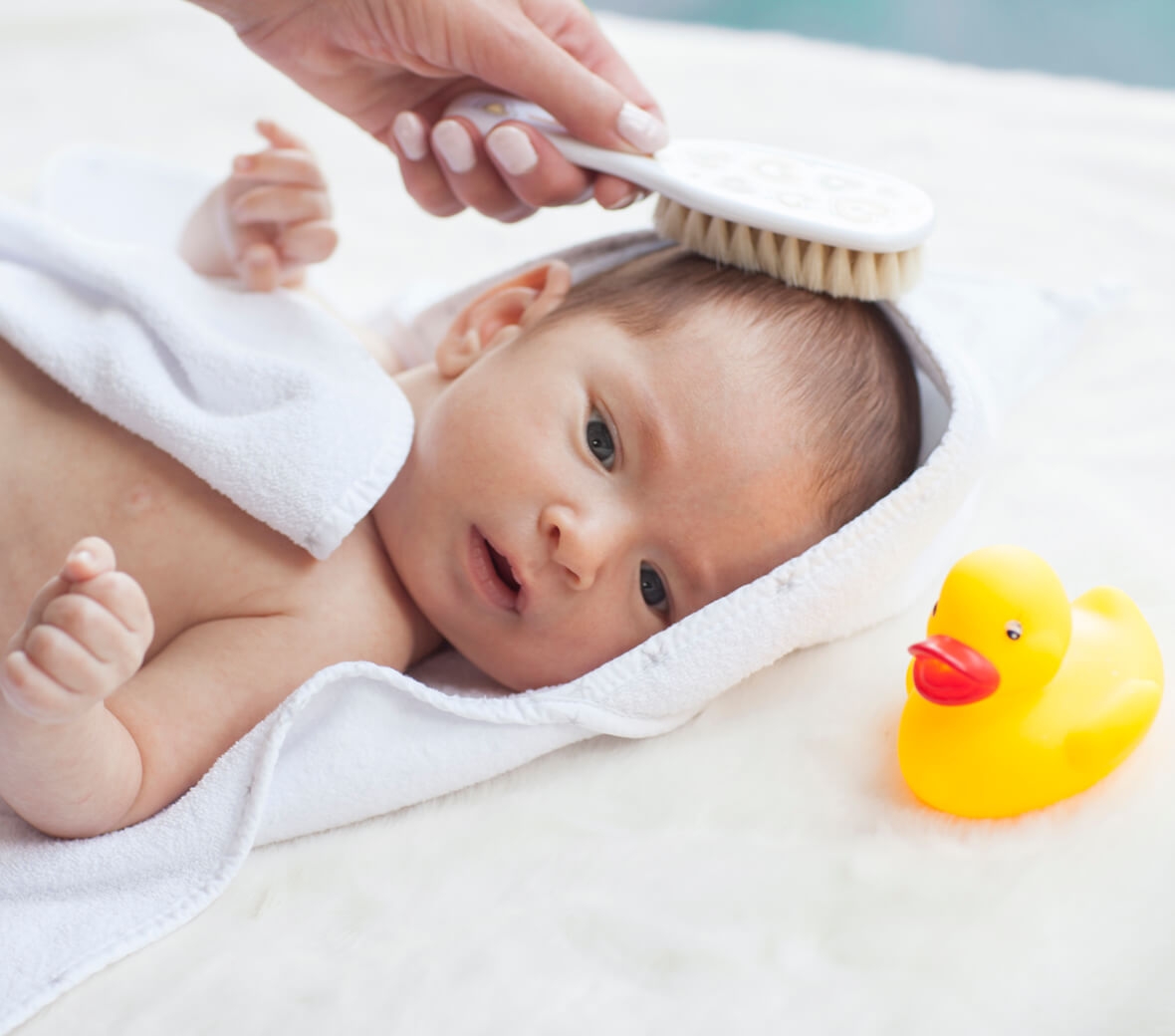 Gdy ciemieniucha po wpływem oliwki oddzieli się już od skóry, możesz rozpocząć jej usuwanie. W tym celu użyj szczotki (z miękkim włosiem, aby nie podrażnić skóry maluszka) i wyczesuj powoli łuski z włosów dziecka. Jeśli Twój maluszek ma gęste lub dłuższe włoski, możesz użyć do tego gęstego grzebienia.