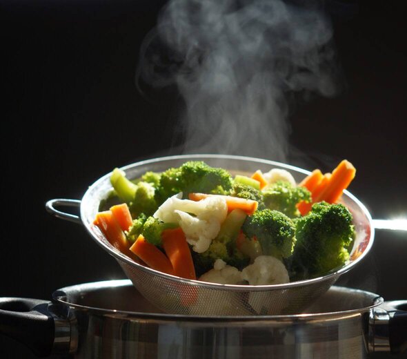 Potrawy można przyrządzić w parowarze, bądź w garnku ze specjalną wkładką do parowania. Jeżeli nie masz ani parowara, ani specjalnej wkładki do garnka, to by przygotować maluszkowi porcję obiadku możesz użyć zwykłego garnuszka, włożyć do środka metalowe sitko i przykryć pokrywką.