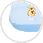 Baveta este disponibilă în mai multe culori. Pachetul conține o bucată. Produs potrivit pentru copiii cu vârsta de peste 12 luni.