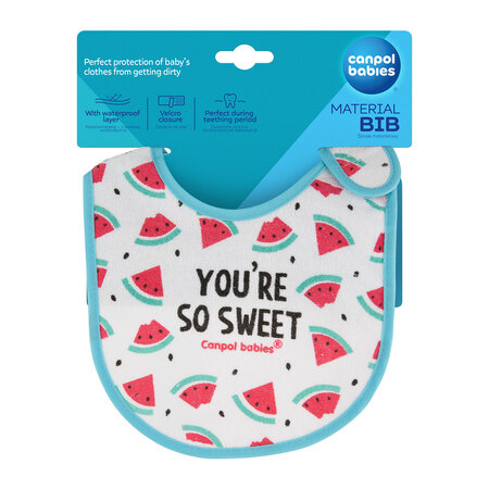 Simbol: 15/114_pinBavetele din colecția SO COOL protejează hainele copilului în timpul mesei. Produsă din bumbac moale. Nu irită pielea delicată a copilului. Stratul impermeabil de dedesubt protejează îmbrăcămintea. Sistem de închidere Velcro confortabil.