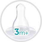 Este prevăzut cu o tetină din silicon universală pentru vârsta de 3 luni+, care poate fi dezinfectată în mod repetat.