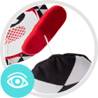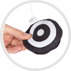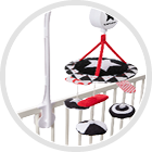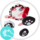 Stimulează simțul văzului, datorită culorilor roșu și negru – primele pe care le percepe nou-născutul.