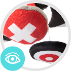 Stimulează simțul văzului, datorită culorilor roșu și negru – primele pe care le percepe nou-născutul.