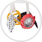 4 elemente, inclusiv o oglindă, zornăitoare și jucărie pentru dentiție, stimulează simțurile copilului și exersarea abilităților motorii.