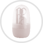 Setul conține o forfecuță, o unghieră practică, o pilă de unghii delicată și o pensetă. Produs disponibil în două culori. Pentru a reduce la minimum riscul mișcărilor bruște ale copilului, se recomandă să-i tăiați unghiile bebelușului în timpul somnului. Setul nu se poate utiliza în mașina de spălat vase. Nu se poate dezinfecta sau fierbe.