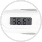 Când temperatura atinge punctul maxim de măsurare sau când nivelul actual al temperaturii a fost măsurat, simbolul „°C” de pe ecran nu mai clipește și se aude un semnal sonor. Dacă temperatura depășește 37,5°C, veți auzi un semnal dublu.