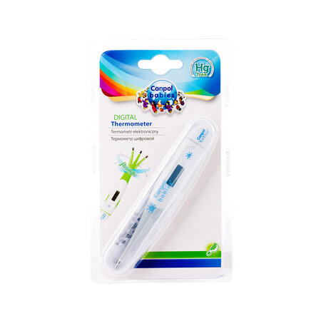 Simbol: 9/104Termometrul de ultimă generație măsoară temperatura copilului în câteva minute. Este prevăzut cu un ecran digital clar, care permite citirea precisă a temperaturii. De asemenea, un semnal sonor că va anunța când procedura de măsurare s-a încheiat. Interval de măsurare 32,0-42,9°C. Setul include și o cutie practică pentru depozitarea în condiții de igienă.