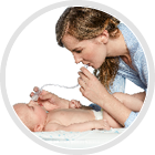 Положите ребенка на спину на кровать, пеленальный столик или на собственные колени. Вы можете осторожно наклонить голову ребенка назад. Затем аккуратно втяните носовой аспиратор ребенка и пластиковую трубочку себе в рот. Вдыхая воздух через трубочку, вы создадите давление, которое всосет скопившийся в нос секрет к наконечнику аспиратора. При необходимости отрегулируйте мощность всасывания. Рекомендуется постепенно увеличивать мощность всасывания. Закончите втягивать воздух, когда обе носовые перегородки будут очищены. После процедуры вытрите ребенку нос платком.