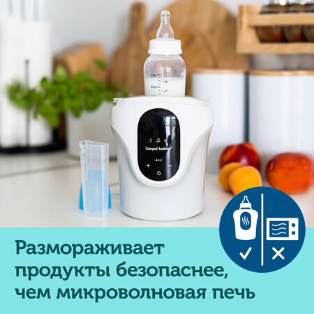 Многофункциональный подогреватель позволит приготовить детское питание идеальной для подачи температуры всего за несколько минут. Независимо от того, была ли еда охлаждена в холодильнике или имеет комнатную температуру, устройство нагреет ее быстро и равномерно. Режимы поддержания температуры позволят подавать еду именно тогда, когда это необходимо. Нагреватель также облегчит разморозку продуктов и заваривание бутылочек и небольших аксессуаров для кормления из бутылочки.