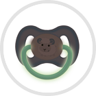 Имеет светящееся в темноте кольцо, что облегчает поиск пустышки.