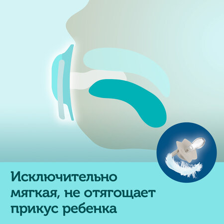Максимально мягкий силикон соски требует меньших усилий при сосании, благодаря чему дает ребенку чувство комфорта.