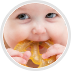 Неоднородная поверхность прорезывателя позволяет облегчить боль при прорезывании зубов.