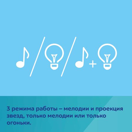 3 режима работы – мелодии и проекции звезд, только мелодии или только огни.