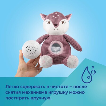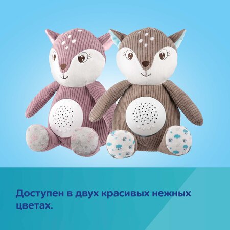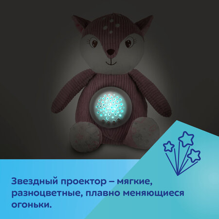 Артикул: 77/206_browМягкая игрушка Олененок с музыкальной шкатулкой и проектором 3в1 - идеальный друг для крепкого сна малыша. У Олененка в животике спрятан механизм, на котором отображаются разноцветные звезды и проигрываются мелодии, которые позволяют малышу заснуть быстрее. Игрушка работает в 3-х режимах. В первом режиме проигрываются мелодии и световые проекции, во втором режиме только мелодии или только нежные огоньки, работая, таким образом, как ночник. Вы можете выбрать одну из 12 успокаивающих мелодий, в том числе звуки природы, пение птиц и биение сердца, а также есть возможность установить 5 уровней громкости в зависимости от предпочтений малыша. Через 30 минут игрушка автоматически выключится. Это идеальный подарок с самого рождения. Доступна в 2-х цветах.