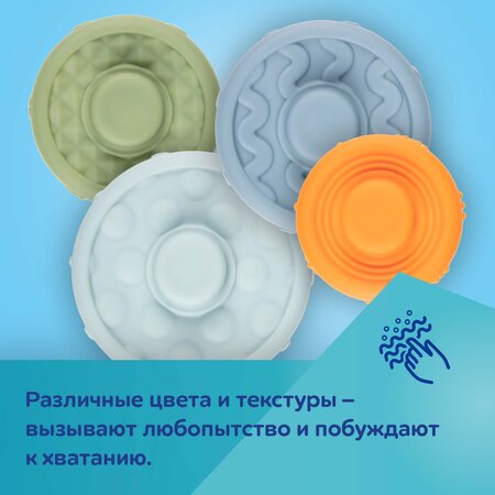 Предназначен для детей от 6 мес. Игрушки нельзя стерилизовать, кипятить или мыть в посудомоечной машине.