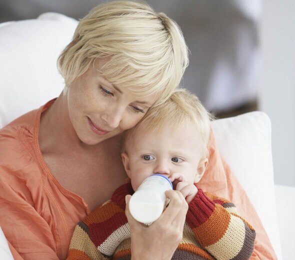 Hlavička dieťaťa by mala spočívať v ohybe vašej paže, v jednej línii s chrbticou. Poloha pri kŕmení z fľaše by mala pripomínať prirodzenú polohu pri kŕmení – najmä keď ho kŕmite dvoma rôznymi spôsobmi.