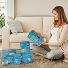 Postpartum hygienic pads are more absorbent than normal menstrual pads and are excellent at absorbing postpartum faeces. It is worth choosing pads with an adhesive strip and wings that prevent the pad from moving and protect the edges of the underwear. The pad’s filling should absorb liquids quickly and retain moisture in the pad. The outer layer of the pad should be made from natural fibres, it should not delaminate or stick to the skin. This ensures free airflow and protection against irritation.