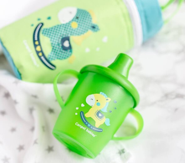 Jest to kubek dla maluchów rozpoczynających przygodę z innym sposobem picia jak pierś mamy czy butelka. Już sześciomiesięczne dziecko powinno poradzić sobie z takim treningowym kubkiem. Dla bezpieczeństwa delikatnych dziąseł na początek najlepiej zdecydować się na wersję z miękkim ustnikiem np. kubek treningowy Canpol babies „Kolorowe zwierzątka”. Jednak trzeba pamiętać, że są dzieci, które od początku preferują twardy ustnik. Warto wybrać kubek o mniejszej pojemności z bocznymi uchwytami. Powinien być wygodny i lekki, dzięki temu brzdąc z łatwością utrzyma go samodzielnie w rączkach. Zwróć też uwagę, czy na ściance kubeczka jest podziałka. Ułatwi Ci to odmierzanie odpowiedniej ilości mleka i innych napojów.