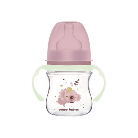 Symbol: 35/236_pinCanpol babies Antikoliková fľaša EasyStart so svietiacimi úchytmi SLEEPY KOALA 120ml ružová