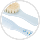 Symbol: 7/406_bluKefa na vlasy s prírodnými, mäkkými štetinami a hrebeň NEWBORN BABY – v súprave. Na každodennú starostlivosť o vlasy dieťaťa. Hrebeň má zaoblené zuby, ktoré nedráždia citlivú pokožku dieťaťa. Jemne kefuje masírovaním hlavy dieťaťa, čím sa spevňujú vlasy. Dá sa používať už v prvých dňoch po narodení. Súprava je k dispozícii v niekoľkých rôznych farbách.