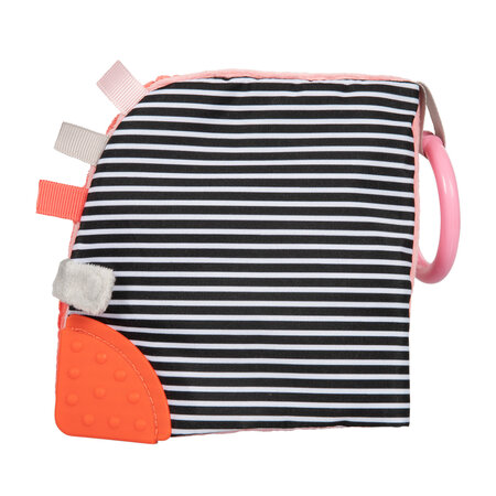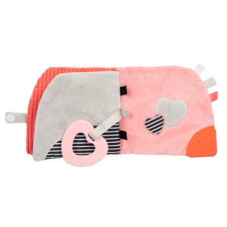 Symbol: 68/075_corVzdelávacia knižka Medvedíky skrýva veľa prekvapení, s ktorými sa dieťa zabaví na dlhý čas. Je z materiálu príjemného na dotyk s rôznymi textúrami. Obsahuje hryzačku, pískadlo, hrkálku a šuštivé prvky. Ďalšou atrakciou je bezpečné zrkadielko, ktoré vzbudí zvedavosť dieťaťa. Stimuluje rozvoj zrakovej, sluchovej a motorickej koordinácie dieťaťa. Hračka ukrýva mnoho prekvapení, ktoré dieťa nadlho zaujmú. Vnútri loptičky sa nachádza zvonček a stužky, ktoré rozvíjajú schopnosť uchopovať veci. Hračka je určená pre deti hneď od narodenia.