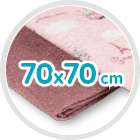 Rozmer rozloženej plienky je 70x70 cm. Veľkosť sa môže mierne líšiť od uvedenej +/- 2,5 cm.