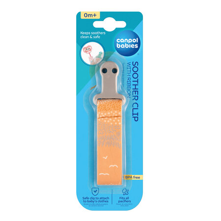 Pevný klip umožňuje pripevniť cumlík so stuhou na oblečení vášho dieťaťa.
