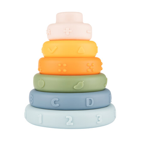 Символ: 79/103Canpol babies Іграшка пірамідка тактильна розвиваюча складається з 6 елементів різних розмірів та кольорів. Складання різнокольорових елементів від найбільшого до найменшого у формі пірамідки розвиває спритність і терпіння у малюка. Canpol babies Іграшка пірамідка тактильна розвиваюча допомагає навчитись розрізняти кольори та розміри, підтримує розвиток зорово-рухової координації малюка. Кожен шар пірамідки має вставки різної форми – цифри, літери, крапочки тощо, щоб малюк міг торкатися їх пальчиками, вивчаючи нові текстури, активуючи відчуття дотику, також деякі елементи будуть чудовими. як прорізувачі. Canpol babies Іграшка пірамідка тактильна розвиваюча - це класична розвиваюча іграшка, за допомогою якої малюк під час гри тренує мануальні навички, пам'ять та уяву, а також логічне та стратегічне мислення — як скласти вежу з розкиданих елементів. Складання пірамідки - це чудова розвага для малюків. Canpol babies Іграшка пірамідка тактильна розвиваюча рекомендована діткам від 6 місяців.