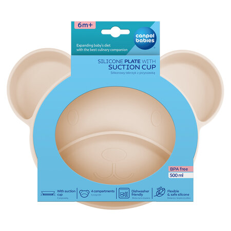 Символ: 51/401_cremeCanpol babies Тарілка силіконова на присосці з трьома відділами Ведмедик