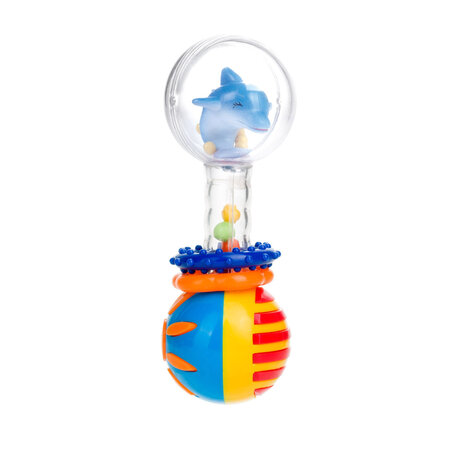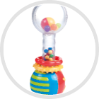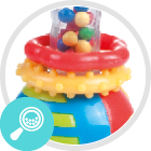 Символ: 2/457Брязкальце зручне і легке. Його барвисті рухливі елементи різної текстури спонукають дитину займатися спортом і розважатися, стимулюючи його психомоторний розвиток. Має м’яко закруглені форми. Прозорі частини іграшки містять маленькі різнокольорові кульки, які при струшуванні рухаються і викликають приємний звук. Виріб призначений для дітей віком 0м +.
