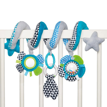 Символ: 68/063_bluБарвиста спіральна іграшка ZIGZAG підходить, як для ліжечка, так і для коляски. Виготовлена з приємного на дотик матеріалу з різноманітними текстурами. Прекрасно стимулює розвиток зорово-слухової та моторної координації дитини. У іграшці приховано багато сюрпризів, які надовго зацікавлять малюка. Укомплектовано брязкальцем та безпечним дзеркалом. Підходить для дітей віком 0м+.