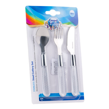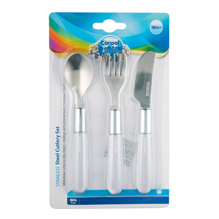 Canpol babies Набір металевий (ложка+виделка+ніж) - білий