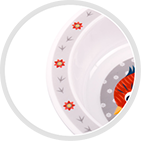 Більш широкий край дозволяє зручно тримати миску та тарілку під час годування.