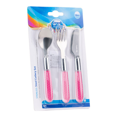 Canpol babies Набір столових приладів з нержавіючої сталі, рожевий