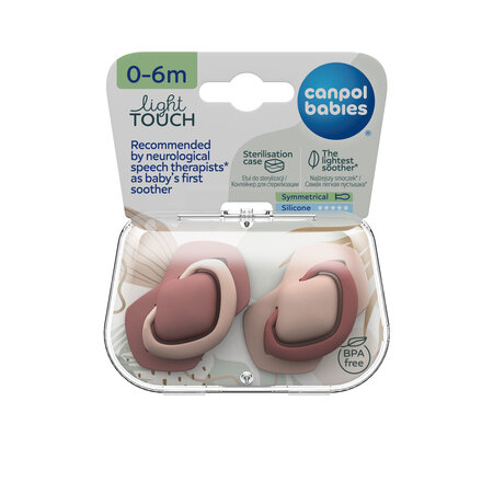 Символ: 22/655_pinРекомендовано фахівцями, як першу дитячу пустушку.* Light touch пустушки були створені, щоб забезпечити максимальний комфорт для найменших діток. Їхня надзвичайно м’яка силіконова гума вимагає менше зусиль при смоктанні, і легка профільована основа не обтяжує прикус дитини і гарантує легке дихання, що за словами фахівців, має значний вплив на правильний розвиток ротової порожнини дитини.** Завдяки сучасному футляру, який можна використовувати, як для зберігання, так і для швидкої та зручної дезінфекції в мікрохвильовій печі, ви можете легко підтримувати в чистоті пустушки Light touch. Трохи води і 2 хв достатньо, щоб забезпечити пустушку гігієнічною чистотою. Light touch пустушки доступні в декількох колекціях згідно з унікальними останніми тенденціями і в різних розмірах - вони ростуть разом з вашою дитиною.