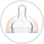 Соска нагадує форму грудей мами, завдяки чому уможливлює поєднання природного вигодовування з годуванням із пляшечки.