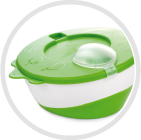 Миску (без ложки і кришки) можна використовувати в мікрохвильовій печі (макс. потужність 440 Вт, макс. час 2 хв). Будьте особливо обережні під час нагрівання їжі в мікрохвильовій печі. Завжди помішуйте підігріту їжу, щоб забезпечити рівномірний розподіл температури. Перевіряйте температуру перед годуванням. Нерівномірне нагрівання їжі може призвести до опіків!