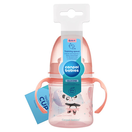 Canpol babies 56/600 силіконовий носик підходить до чашки. Знявши ручки, ви можете легко перетворити тренувальну кружку на стаканчик з водою для дітей старшого віку.